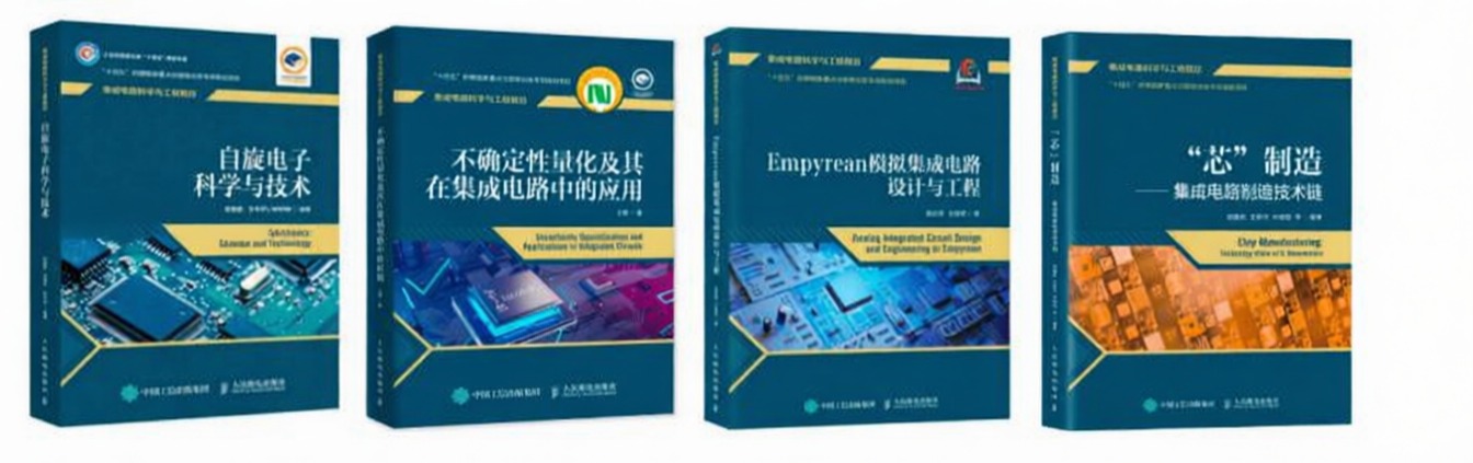 近年来,在"十四五"时期国家重点出版物出版专项规划、国家科学技术学术著作出版基金等项目的支持下,学院持续推进集成电路领域知识体系的构建与完善,先后组织出版了一系列高水平专业教材与学术专著,覆盖集成电路多个关键细分领域。《集成电路科学与工程导论》之外,《自旋电子科学与技术》《不确定性量化及其在集成电路中的应用》《Empyrean模拟集成电路设计与工程》《"芯"制造——集成电路制造技术链》等重要著作先后出版,聚焦集成电路设计、制造、模拟仿真、不确定性分析等前沿方向,形成了层次分明、内容互补的知识网络体系。这一系列工作不仅丰富了集成电路专业教学资源,也为学科建设与行业人才培养提供了重要支撑。