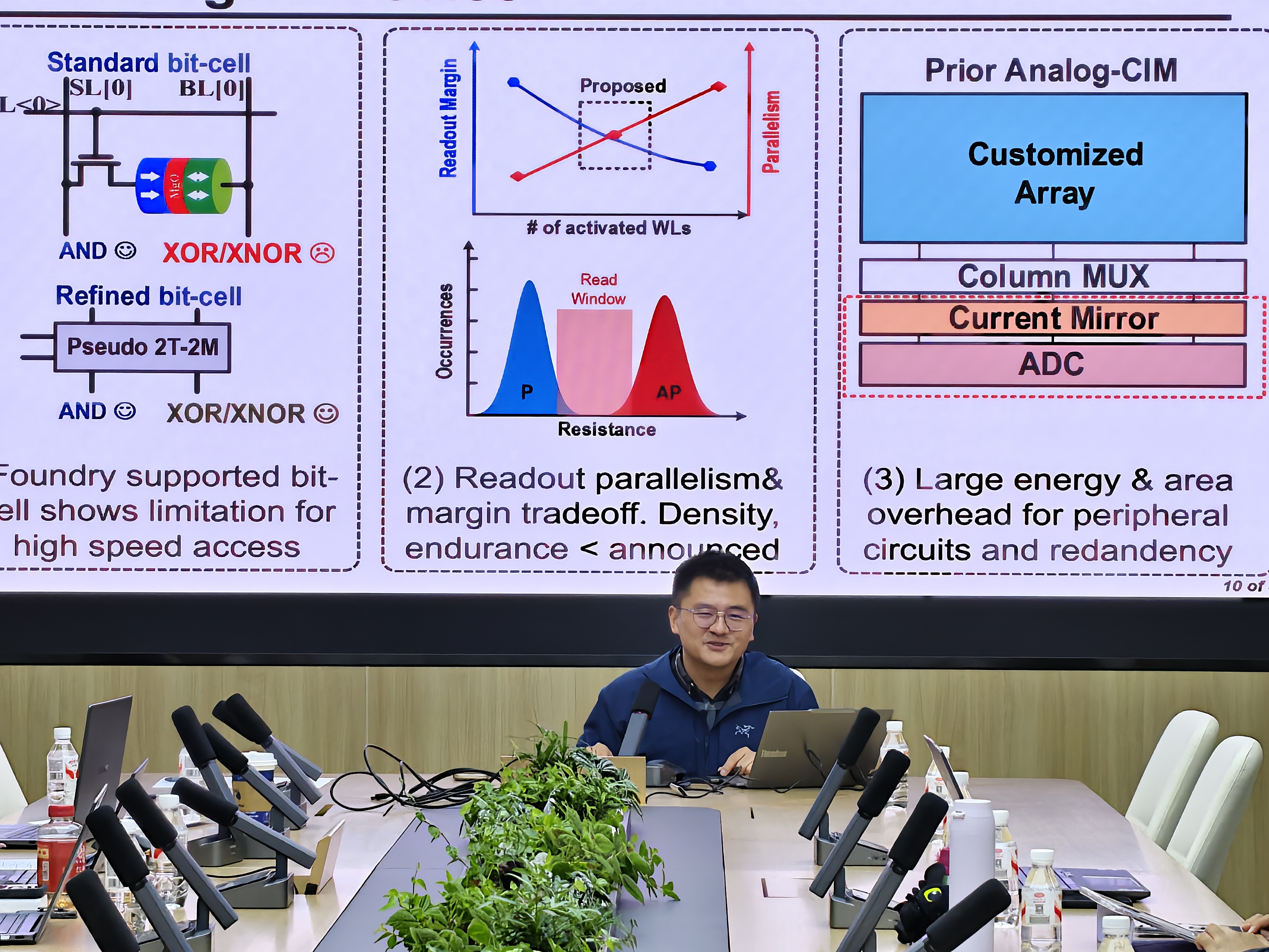 东南大学蔡浩教授系统剖析了实现高可靠性、高密度MRAM(磁随机存取存储器)所面临的技术挑战,并展示了从器件层面到系统层面的协同设计方法。蔡老师详细讲解了如何通过设计技术协同优化框架平衡性能、密度与良率,以及稳定可靠的电源与访问电路设计方案。在计算范式方面,蔡老师进一步对比了数字、模拟及混合模式存内计算在精度、能效与面积上的权衡,并介绍了基于压控MRAM的伊辛机如何为组合优化问题提供高效的硬件求解途径,为新一代计算架构提供创新思路。