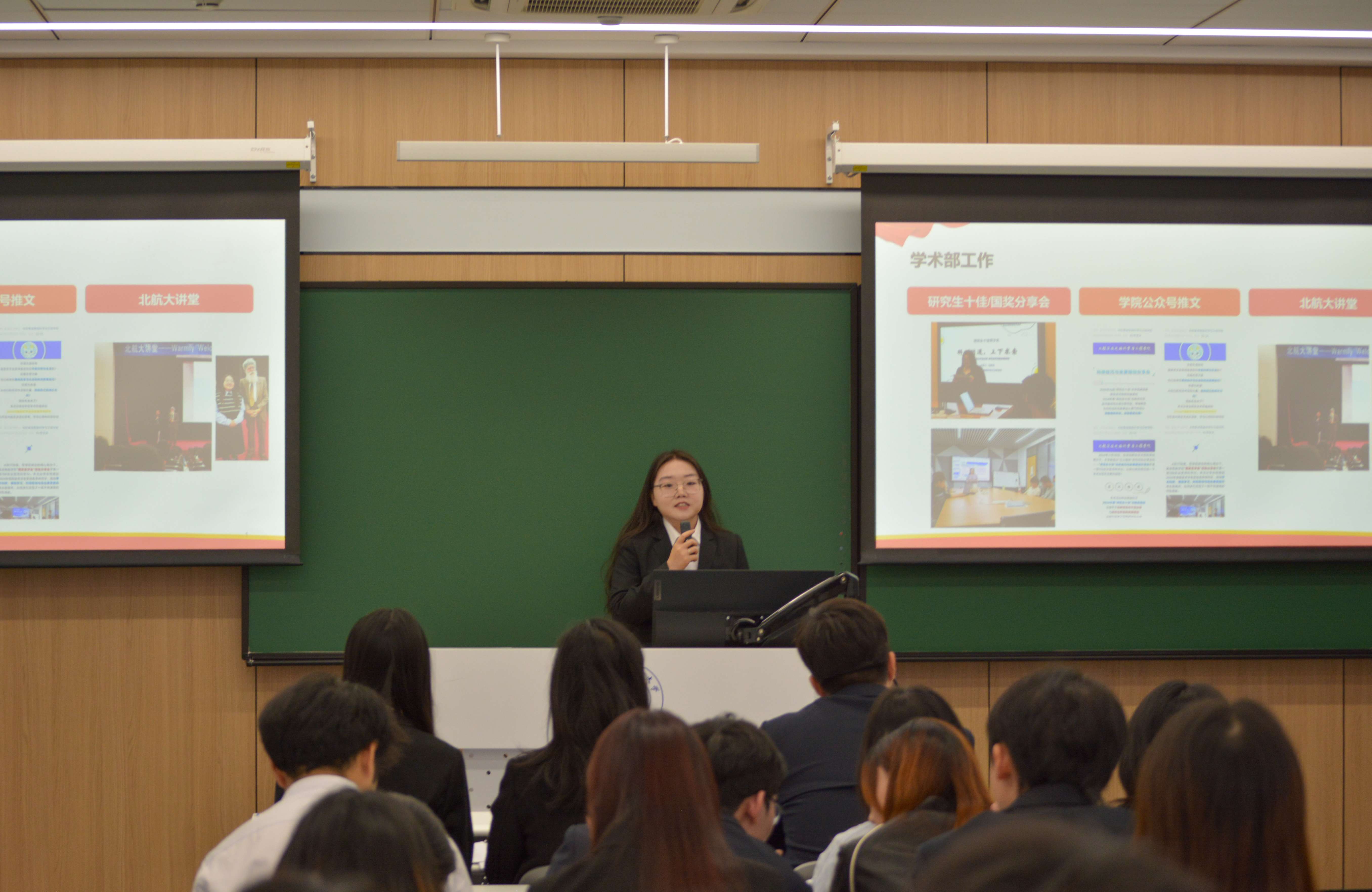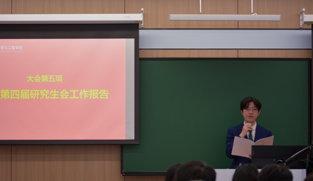 代表资格审查委员会组长彭尹萱宣读《北京航空航天大学集成电路科学与工程学院研究生代表大会代表资格审查报告》。大会审议并通过了《代表资格审查报告》。其后,大会听取并审议了《第四届研究生会工作报告》,以及学术部、文体部、就业部的工作述职。报告系统回顾了过去一年研会在学术引领、就业服务、文体活动等方面取得的显著成效,为后续工作奠定了坚实基础。