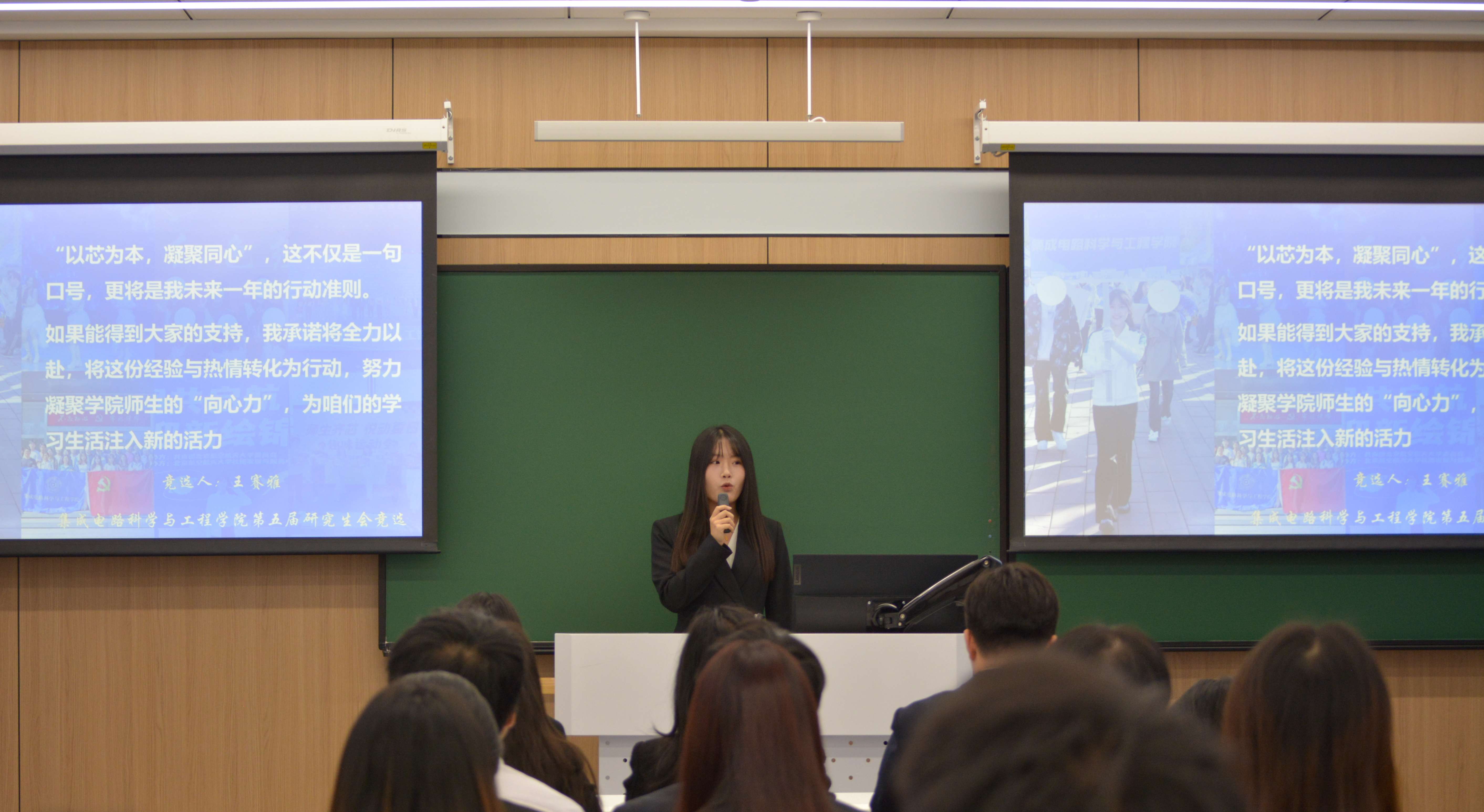 校研究生会主席团成员舒婧焱首先致辞,她充分肯定了集成电路科学与工程学院研究生会过去一年的工作成果,希望新一届研会继续加强校院联动,发挥桥梁纽带作用,更好地服务同学成长成才。