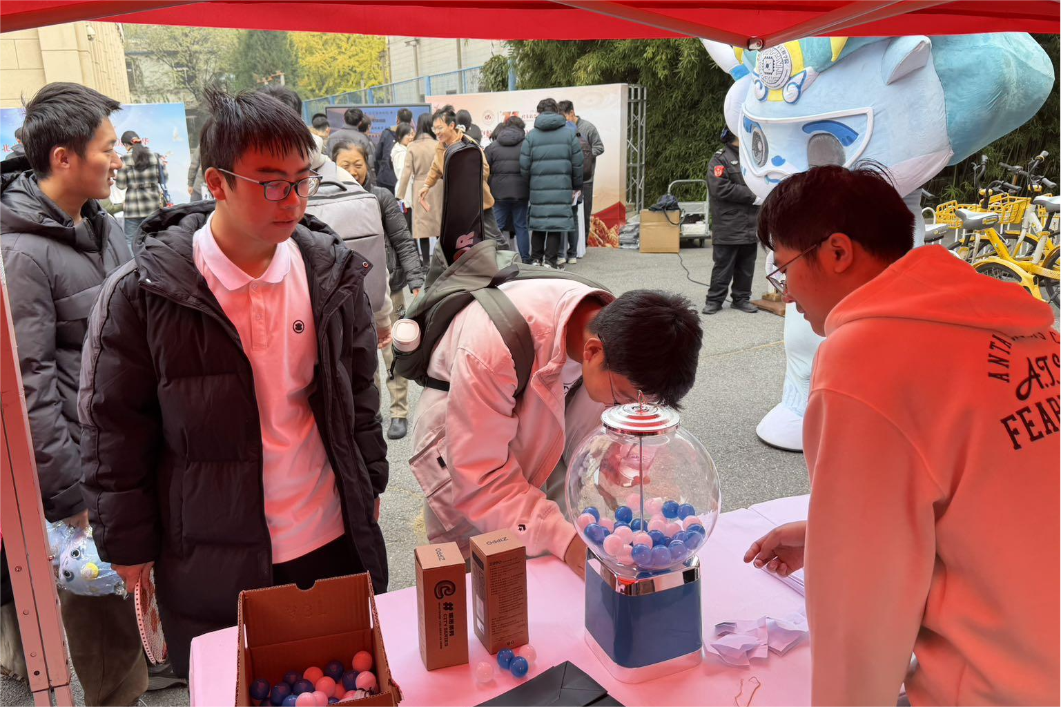 接下来是幸运抽奖环节,完成打卡挑战后,大家在兑奖区收获到了小小惊喜:承载校园记忆的定制明信片;憨态可掬的“芯小麒”玩偶;实用便携的瑜伽柱;冬日贴心的保温杯。恭喜获奖的同学与校友!愿这份“仪式感”,为你的新学期加满能量。