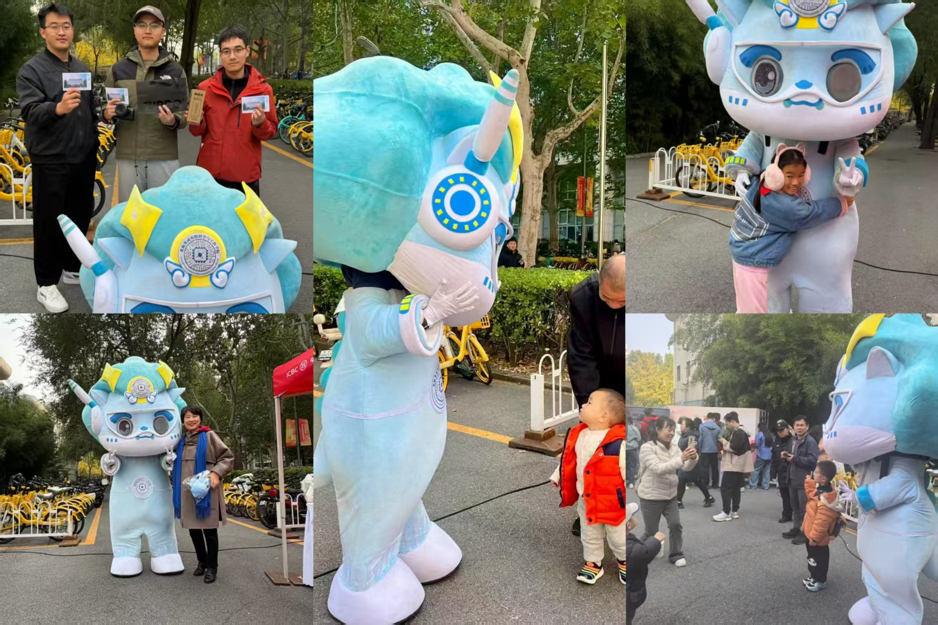 最后是玩偶互动,由吉祥物“芯小麒”派送校庆祝福。挥手、击掌、合影,一个个快乐瞬间定格在镜头里。祝福与欢笑同频共振,成为嘉年华记忆里最柔软的底色。