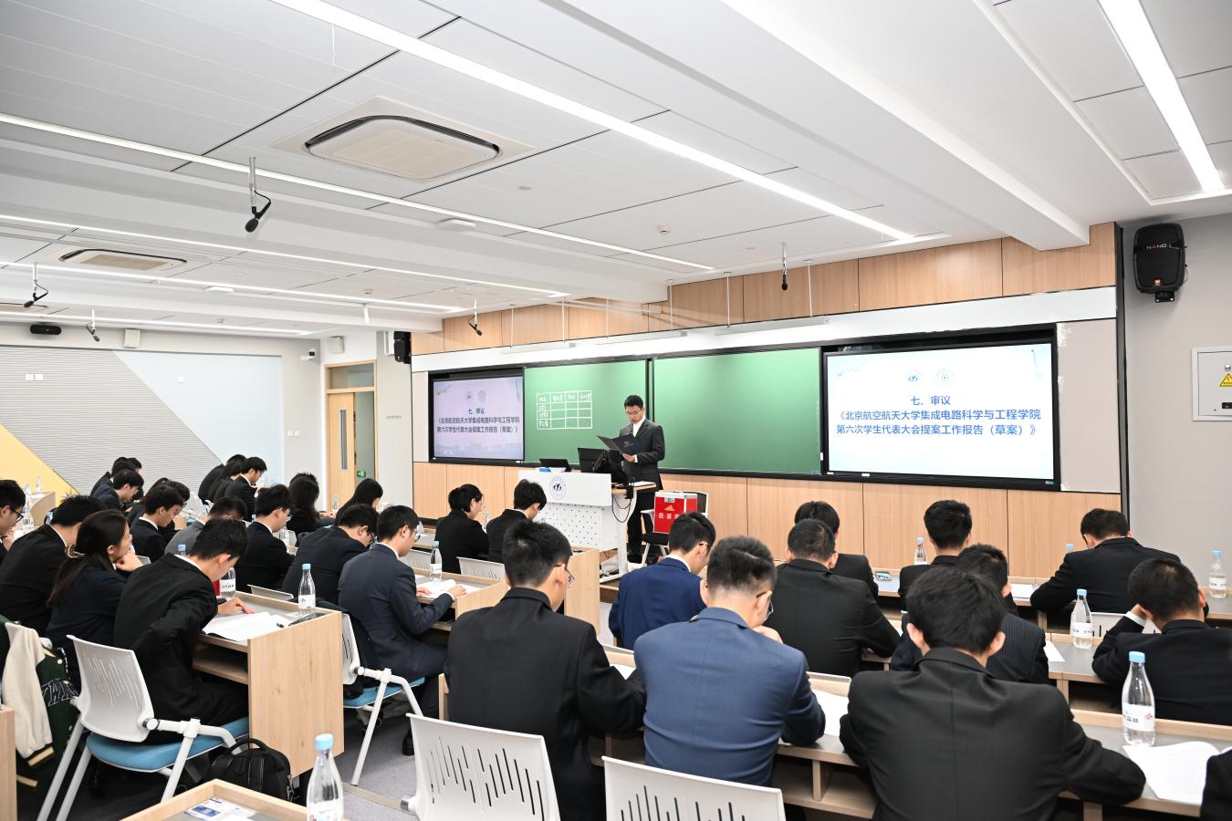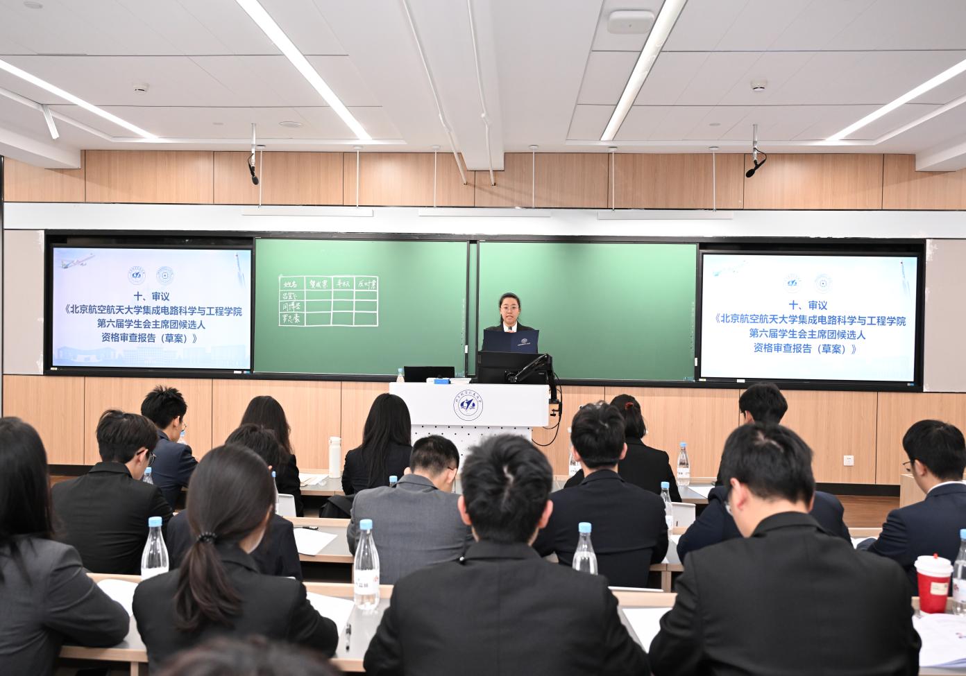 10月26日,北京航空航天大学集成电路科学与工程学院第六次学生代表大会(以下简称大会)在主南401顺利召开。学院专职辅导员邓修齐、校学生会代表翟培、34名本科生代表及学生会全体工作人员到场参会,会议由学生会工作负责人、兼职辅导员郝黎宇主持。大会在庄严的国歌声中拉开序幕。