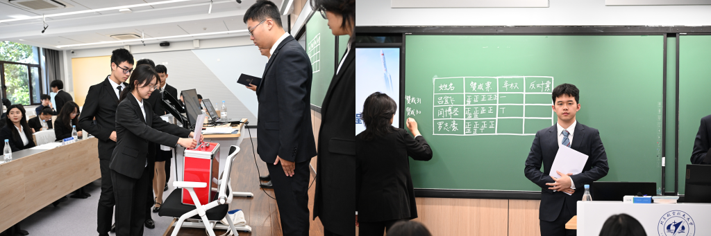 在学生会主席团选举环节,与会代表依次审议通过了《主席团选举办法(草案)》《监票人及计票人名单(草案)》《主席团候选人资格审查报告(草案)》,同意由杜佳炜担任监票人,宋光耀、尹佳乐、陈华驰担任计票人。
