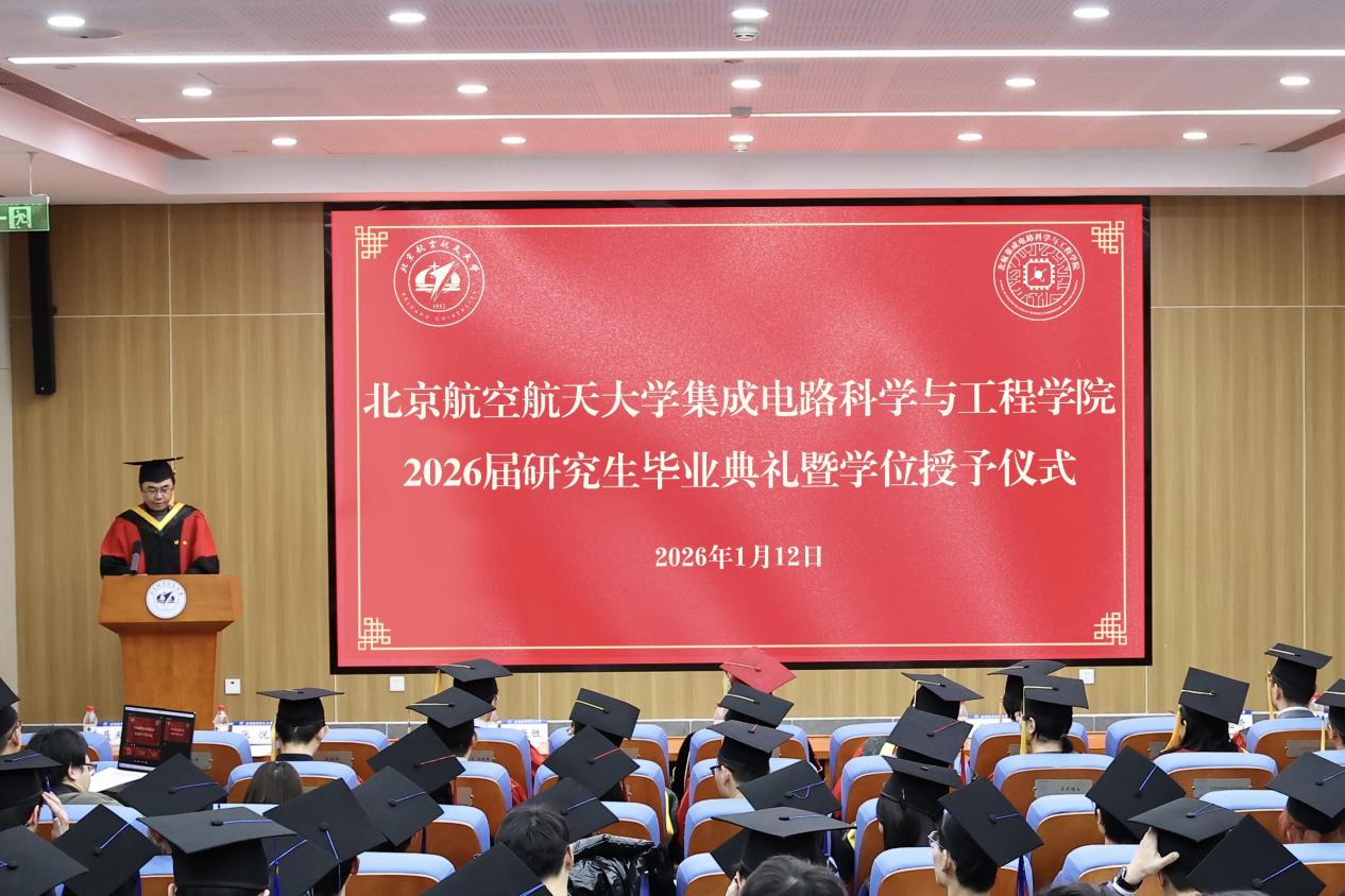 1月12日上午,北京航空航天大学集成电路科学与工程学院2026届研究生毕业典礼暨学位授予仪式在第一馆B1报告厅隆重举行。
