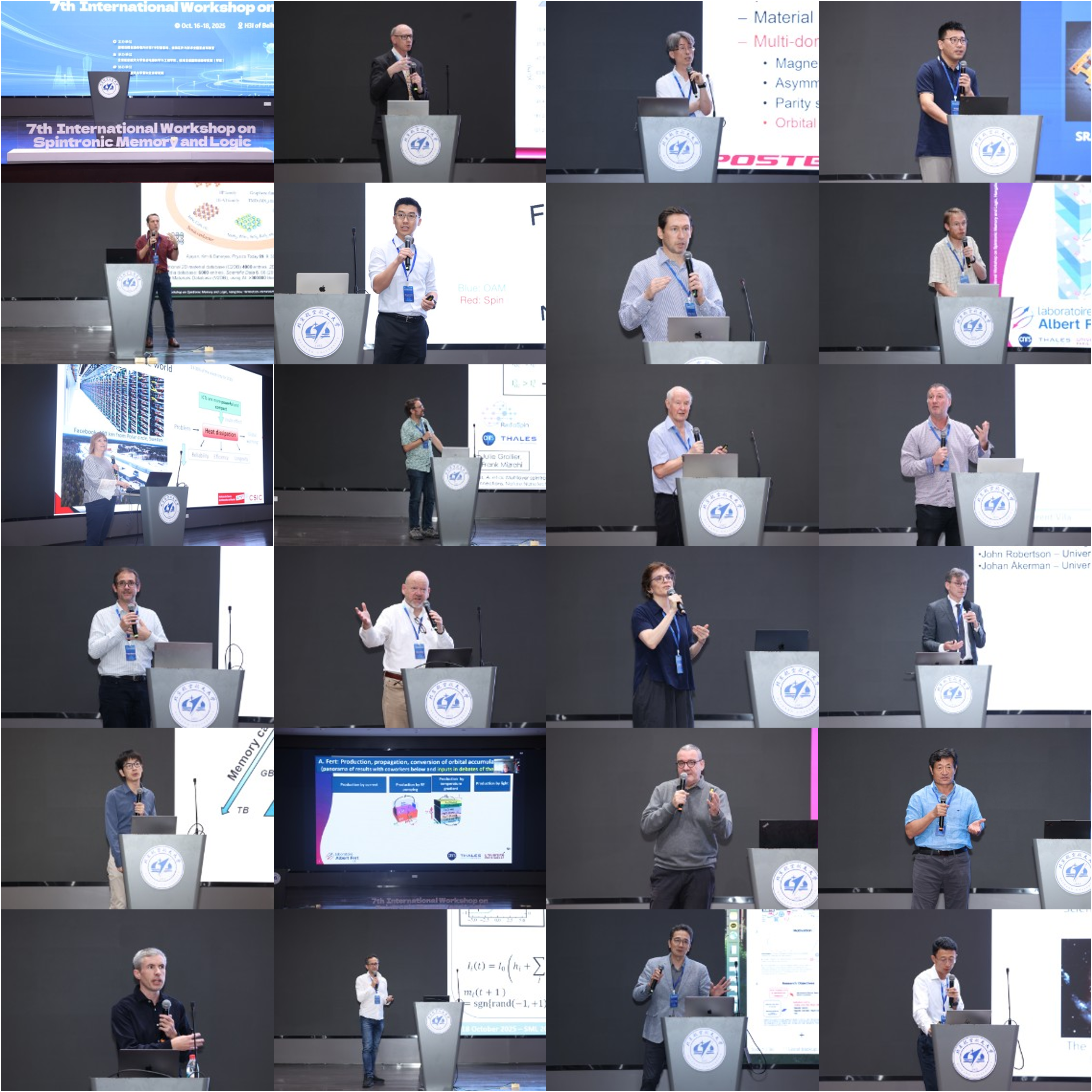 法国格勒诺布尔阿尔卑斯大学Laurent Vila教授、英国剑桥大学Jason Robinson与John Robertson教授、加州大学伯克利分校Jeongmin Hong教授、澳大利亚新南威尔士大学Oleg Tretiakov教授、香港中文大学Yan Zhou教授及瑞典哥德堡大学Johan Åkerman教授,重点介绍了亚铁磁磁畴壁器件、自旋超导、自旋拓扑孤子及自旋纳米振荡器等方面的研究进展。法国洛林大学Stephane Mangin教授深入探讨了超快自旋电子学的物理机制与器件集成策略;西班牙加泰罗尼亚纳米科学与纳米技术研究所Sergio O. Valenzuela教授展示了通过近邻自旋轨道场实现石墨烯的定向自旋调控方案;西班牙马德里材料科学研究所Oksana Chubykalo-Fesenko教授介绍了磁结构中热梯度诱导的动态调控;法国巴黎萨克雷大学Nicolas Vernier教授展示了NV色心磁成像领域的最新成果;致真存储(北京)科技有限公司CTO刘宏喜分享了SOT-MRAM的产业化发展进程。