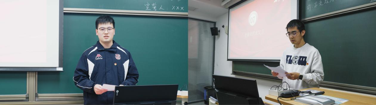 在代表发言环节,新团员代表魏知行同学首先发言。他向悉心培养自己的师长与团组织致以诚挚感谢,并结合自身个人成长经历,分享了对团员使命的深刻理解。他从学业科研、日常生活与理想追求等多个方面,清晰规划了未来的奋斗方向。老团员代表王鑫宇同学随后致辞,向新团员表示热烈欢迎,并分享了在团组织中参与理论学习与实践活动的收获。他以在学院新闻中心的工作为例,生动讲述了如何在平凡岗位上践行团员职责、发挥先锋作用,激励新团员脚踏实地,将誓言转化为务实行动。