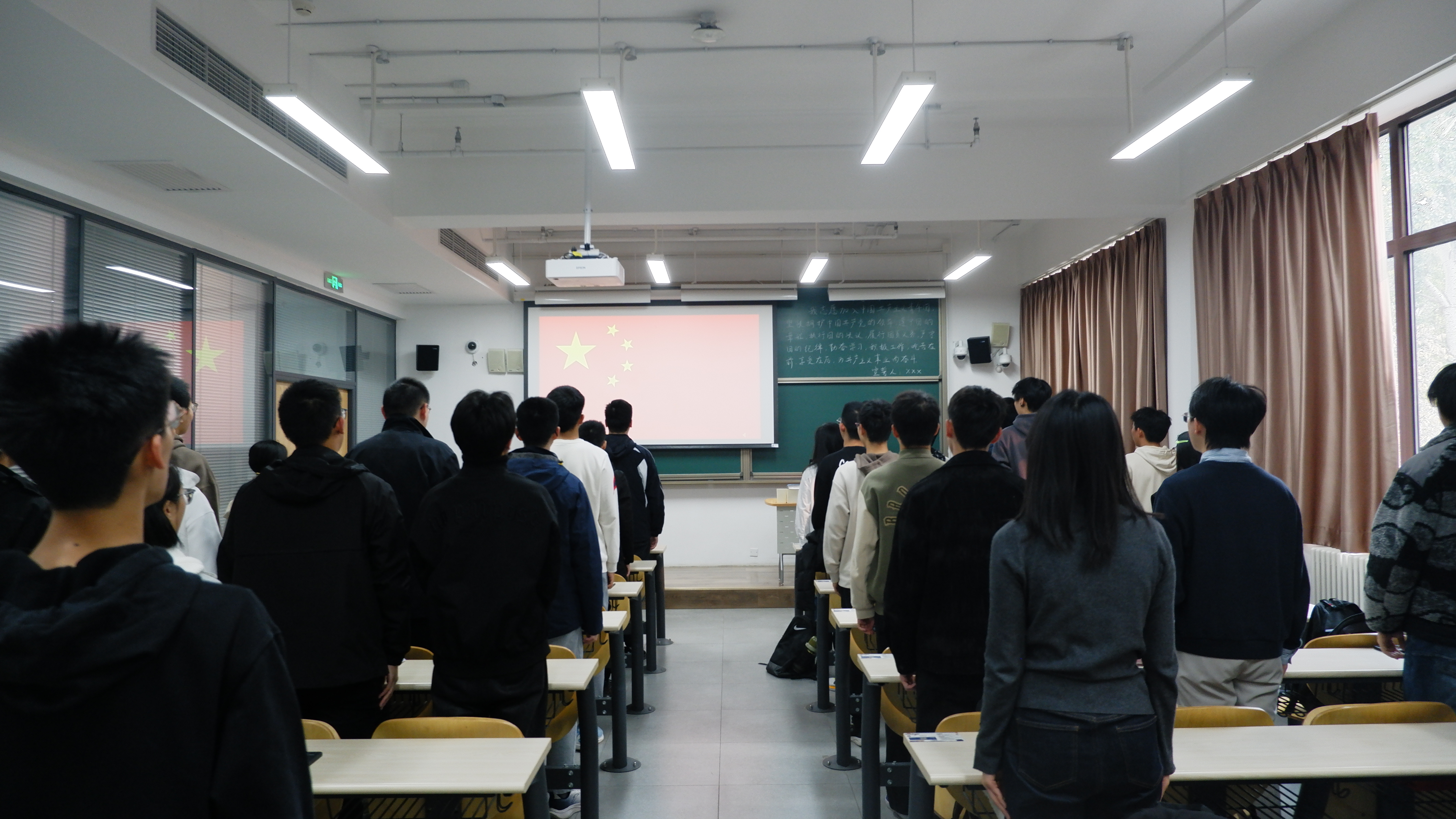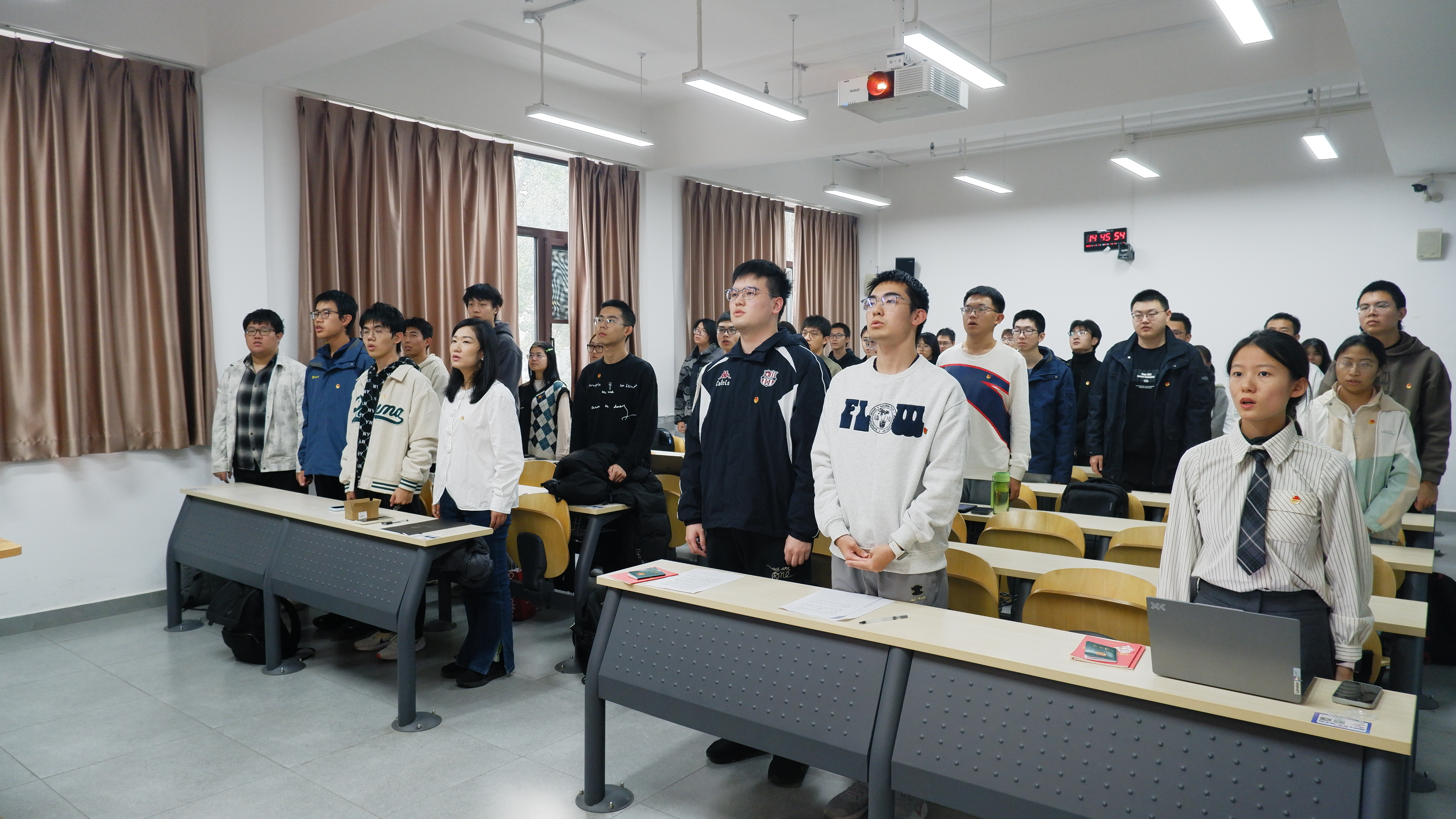 2025年11月5日下午,集成电路科学与工程学院2025年秋季学期新团员入团仪式于三号楼314教室举行。学院专职辅导员丁瑞云、各班团员代表及全体新团员共同出席,仪式由李新宇主持。仪式在雄壮的国歌声中拉开序幕,全体成员肃立齐唱,现场气氛庄重而热烈。