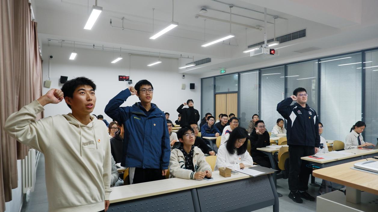 专职辅导员丁瑞云发表总结讲话,结合北航人的红色基因与空天报国传统,通过多位优秀校友扎根行业、服务国家的先进事迹,勉励同学们“把汗水挥洒在祖国需要的地方”。丁瑞云向全体团员提出三点希望:一是以信仰为灯,锚定青春方向,深刻理解“中国共产党为什么能、马克思主义为什么行、中国特色社会主义为什么好”,不断增强历史自觉与使命担当;二是以奋斗为笔,书写青春答卷,努力成为德才兼备、知行合一的时代新人,书写无愧于北航精神的卓越人生;三是以纪律为尺,永葆青春本色,自觉遵规守纪,弘扬社会主义新风尚,永葆共青团员的先进形象。