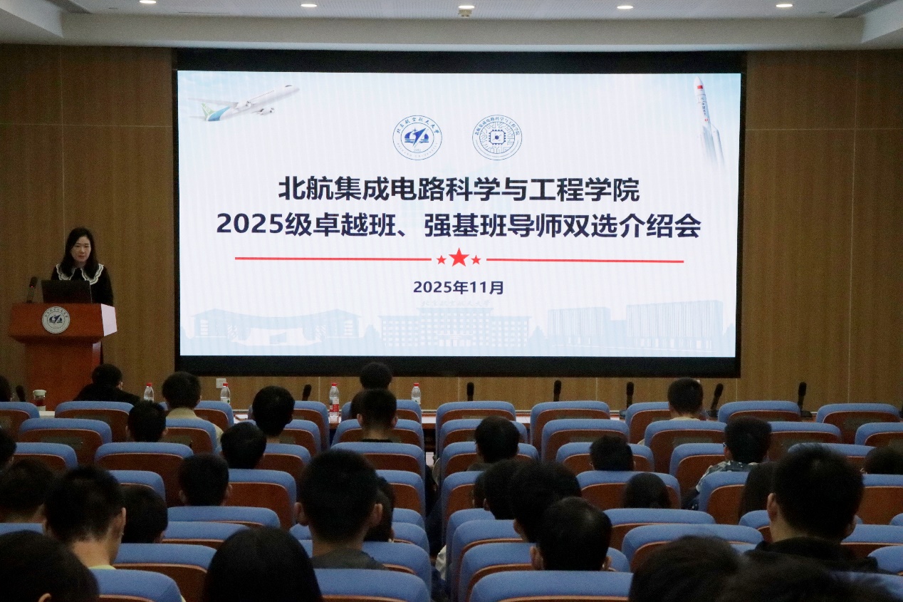 为助力卓越人才培养试验班、强基计划新生规划学术生涯、搭建师生双向选择的高效平台,11月7日,集成电路科学与工程学院在第一馆B1报告厅举行2025级卓越班、强基班导师双选介绍会。各系负责老师、专兼职辅导员及两班全体同学共同参会,会议由专职辅导员邓修齐主持。