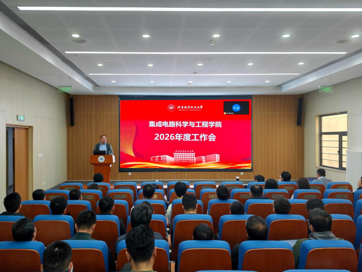 学院常务副院长张悦传达学校2026年度工作会精神,围绕学校“深化改革年”部署学院重点工作。2026年是“十五五”开局之年,是学校跻身世界一流大学行列的决战决胜期、奋进世界一流大学前列的蓄势跃升期。面向服务国家重大战略需求带来的新机遇、新挑战,学院要坚持和加强党的全面领导,深入贯彻党的二十大和二十届二中、三中、四中全会精神,提高结合实际创造性抓落实的能力,以钉钉子精神推动各项任务落地见效。他强调,学院全体教师要牢记为党育人、为国育才的初心使命,科学统筹人才培养、科技创新、平台建设、教师队伍发展等重点任务,持续巩固和拓展集成电路学科特色与优势,以笃行实干推动学校和学院“十五五”规划开好局、起好步,书写加快建设教育强国、科技强国、人才强国的北航担当。